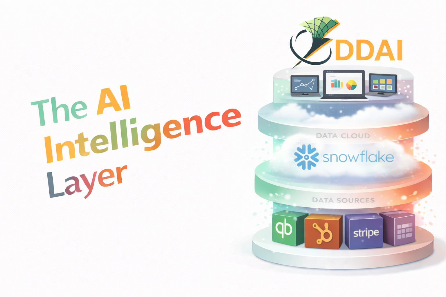 But while the human layer shrinks, the data layer becomes more valuable than ever. Systems like HubSpot, QuickBooks, and Stripe each hold the operational records for their domain—customers, financials, and payments. The challenge is that this data lives in silos. Platforms like Snowflake and Databricks are ideally positioned to securely centralize and scale that data, while intelligence-layer software like DDAI extracts, transforms, and harmonizes it into a unified operational model. The result is a single, canonical view of the business—one that operators can access through a simple AI-powered interface to generate answers, insights, and decisions in real time.